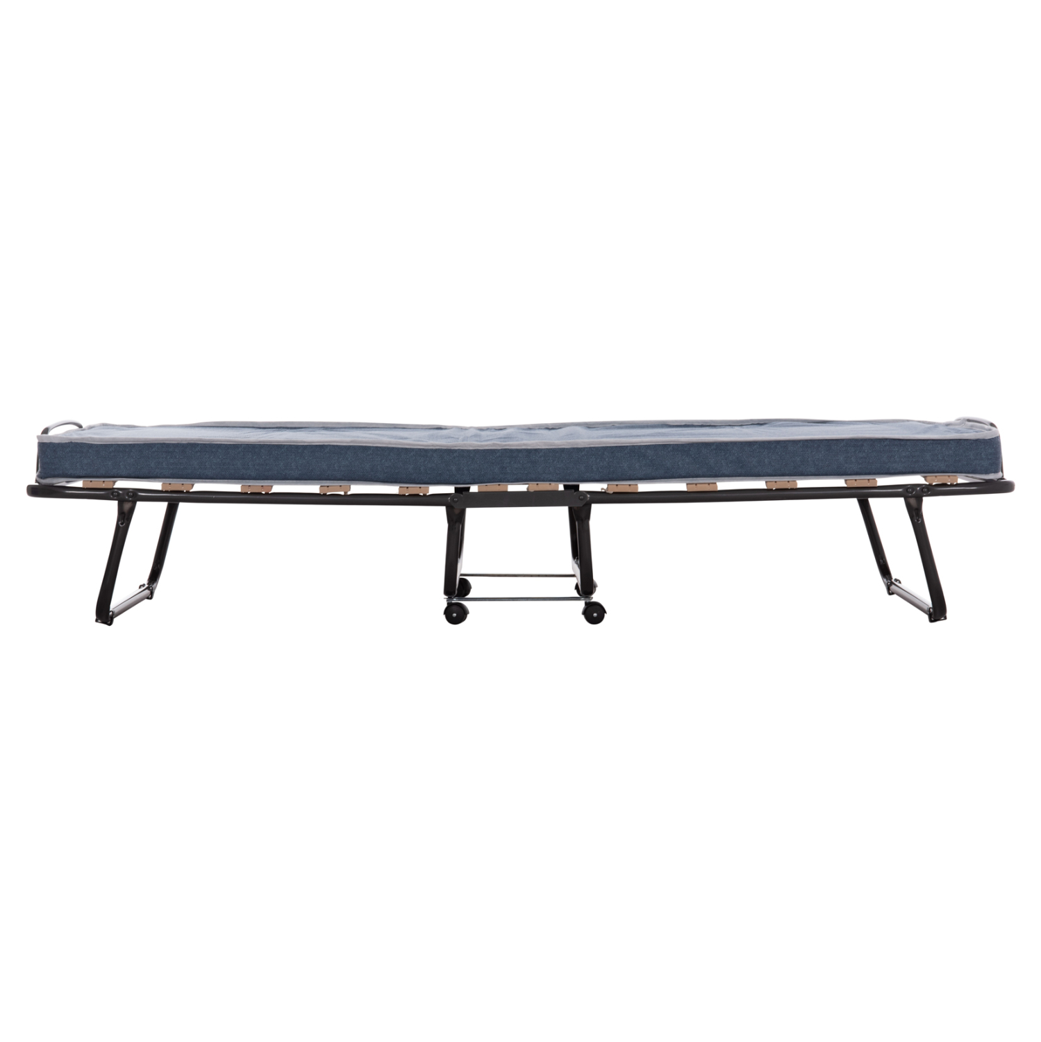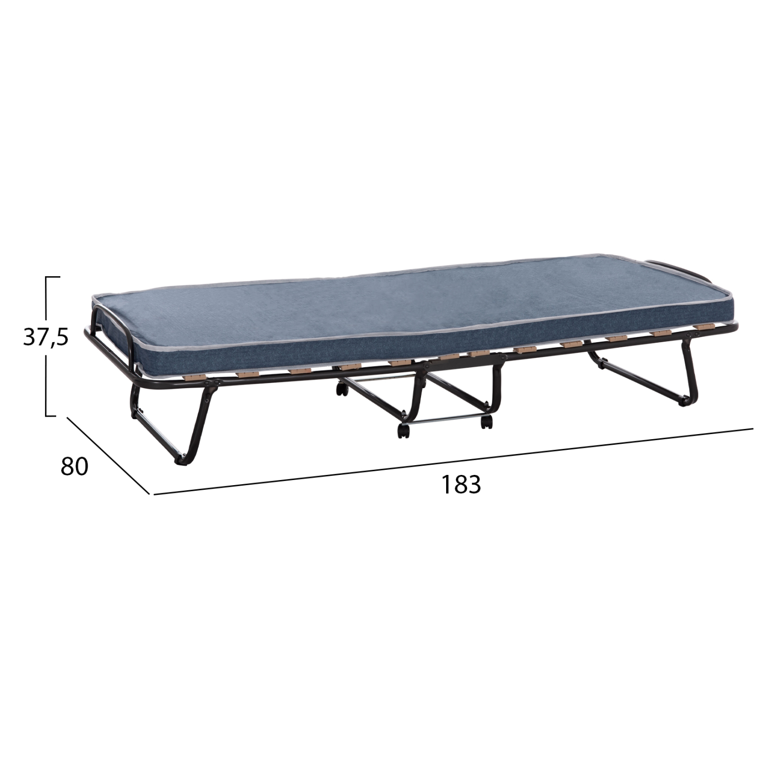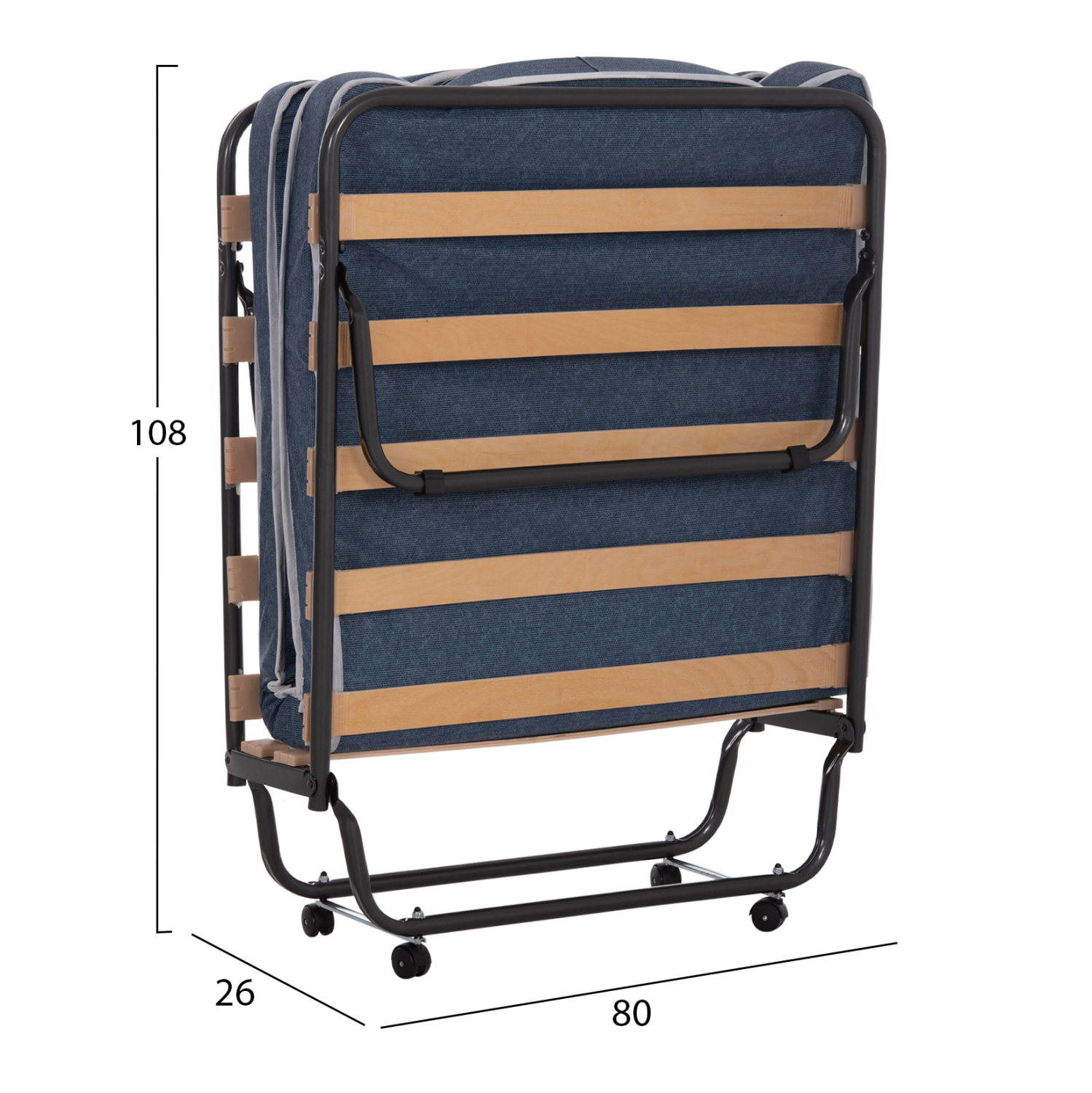 Το FB9604.03 είναι ένα πρακτικότατο μεταλλικό αναδιπλούμενο κρεβάτι (ράντζο) τύπου βαλίτσα (εκστρατείας) σε γκρι χρώμα, που θα σας λύσει τα χέρια. Μπορεί να «διπλωθεί» και να μεταφερθεί ή να αποθηκευτεί εύκολα χάρη στα ροδάκια που διαθέτει, προσφέροντας μια ποιοτική λύση όπου χρειαστεί. Διαθέτει ανατομικές ξύλινες τάβλες.