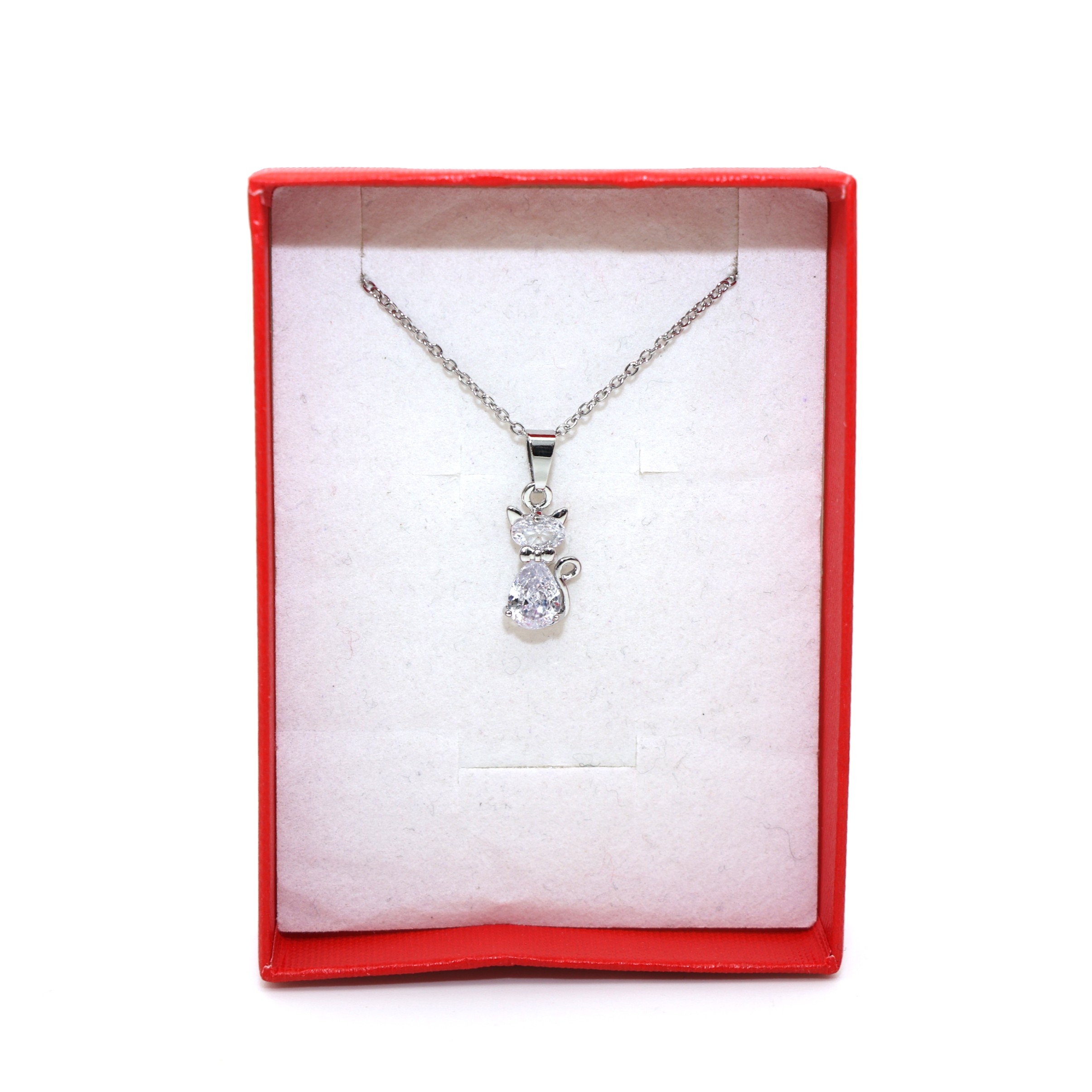 Κομψό ασημί κολιέ από ανοξείδωτο ατσάλι με διακριτικό μενταγιόν γάτα. Κατασκευασμένο από ατσάλι υψηλής ποιότητας, δεν μαυρίζει και διατηρεί τη λάμψη του στο χρόνο, προσφέροντας αντοχή και άνεση στην καθημερινή χρήση. Η λεπτή αλυσίδα και το φίνο σχέδιο προσδίδουν ρομαντικό και θηλυκό χαρακτήρα. Συνοδεύεται από κομψή συσκευασία δώρου, αποτελώντας μια όμορφη επιλογή για να προσφέρετε σε αγαπημένο πρόσωπο. Ιδανικό για όλες τις ώρες της ημέρας και τέλεια επιλογή δώρου, καθώς συνδυάζει κομψότητα και πρακτικότητα.
