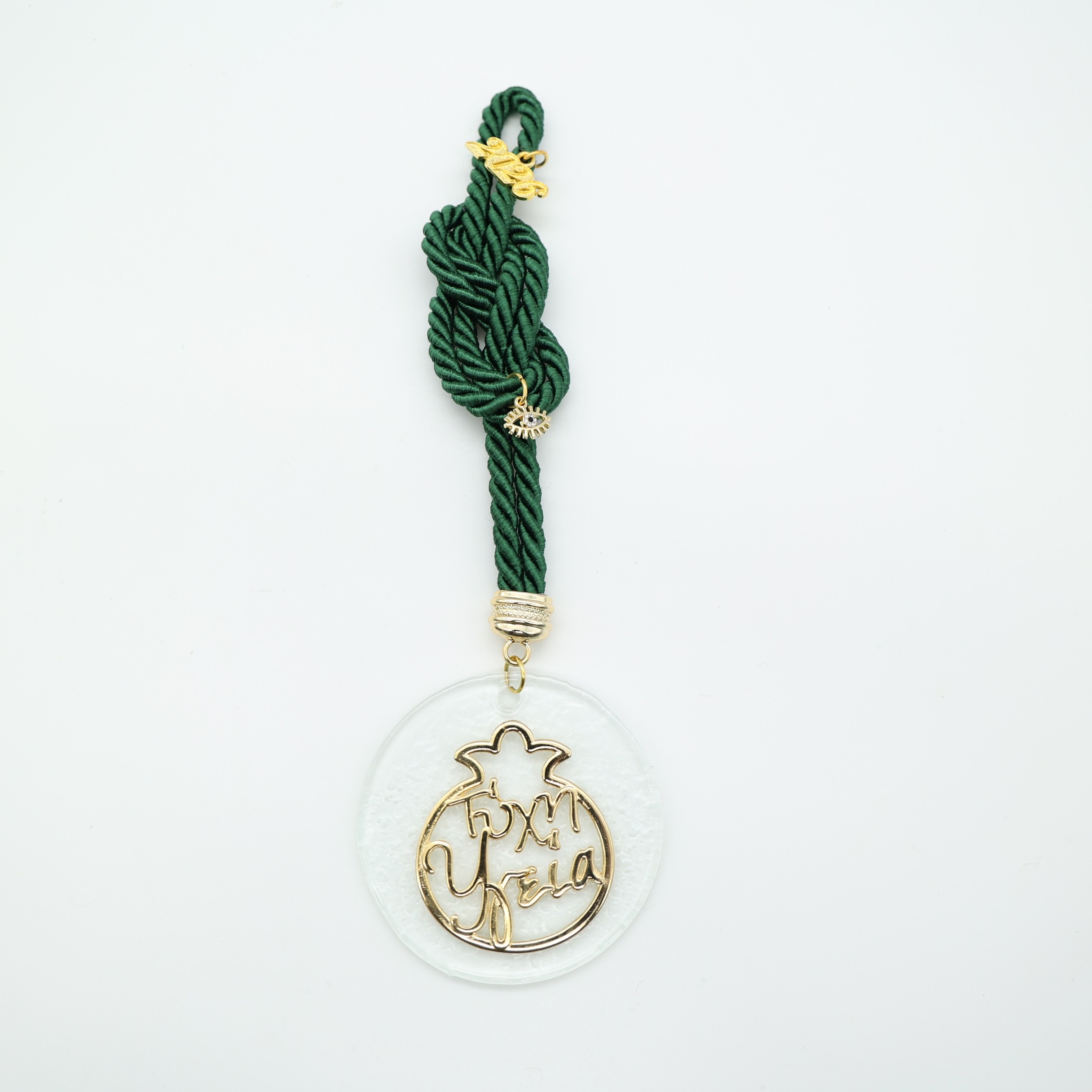 Κρεμαστό Πράσινο Γούρι 2026 με Μεταλλικό Χρυσό Ρόδι
