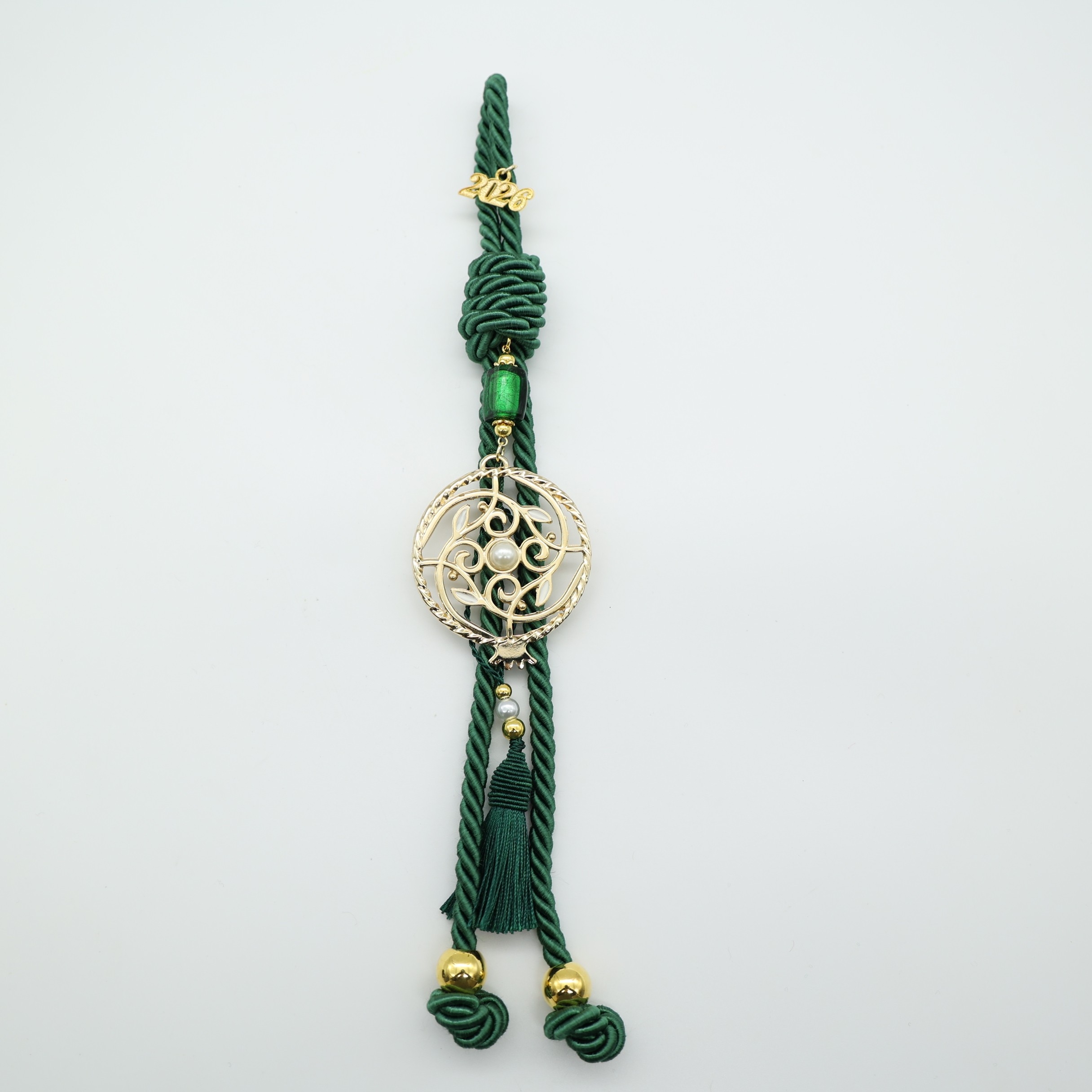 Κρεμαστό Πράσινο Γούρι 2026 με Μεταλλικό Χρυσό Ρόδι - Δέντρο της Ζωής
