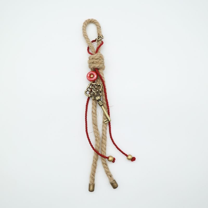 Γούρι 2026 σε Φυσική Απόχρωση Σπάγκου με Χρυσό Κλειδί