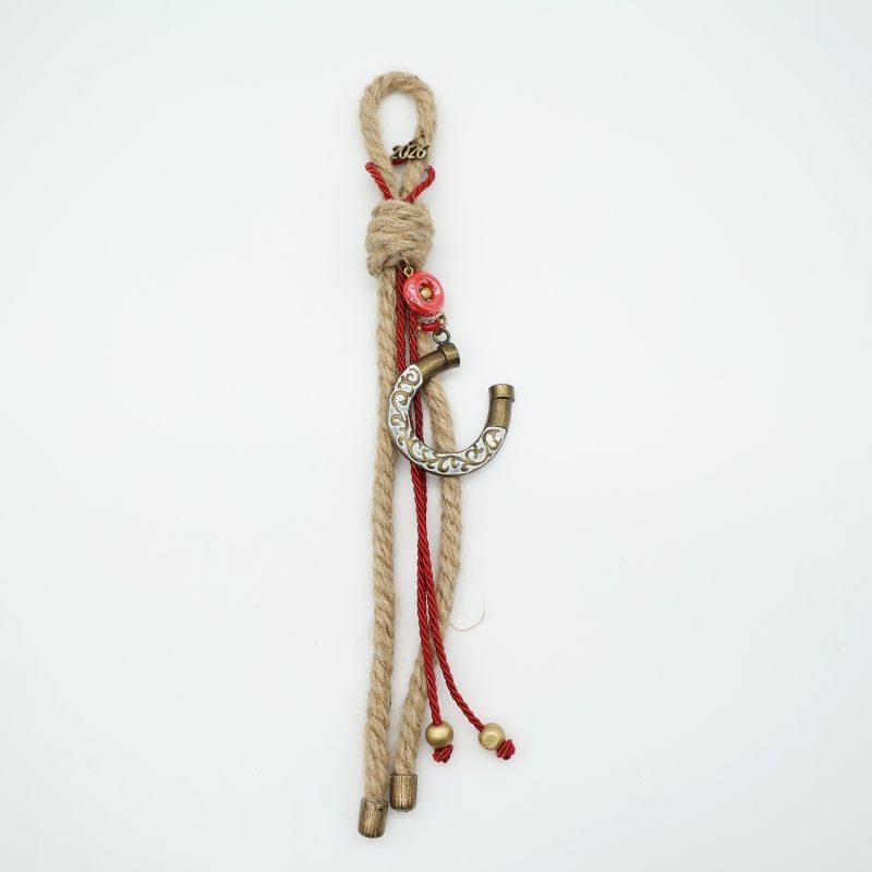 Κομψό γούρι σε φυσική μπεζ/εκρού απόχρωση. Στο κέντρο δεσπόζει ένα χρυσό πέταλο για θετική ενέργεια, το πέταλο συμβολίζει ευημερία και καλή τύχη.