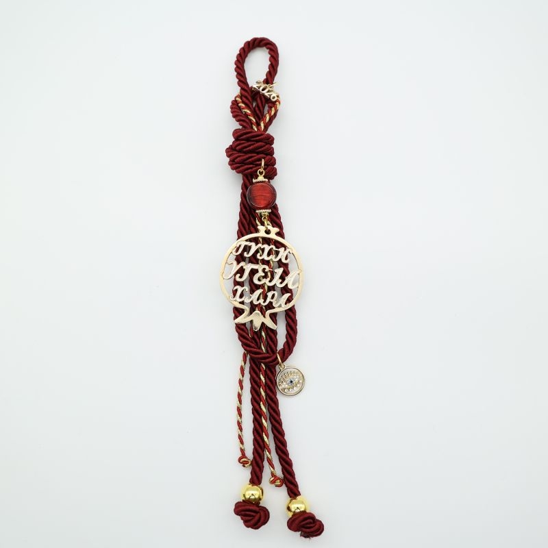 Κρεμαστό Μπορντό Γούρι 2026 με Μεταλλικό Χρυσό Ρόδι