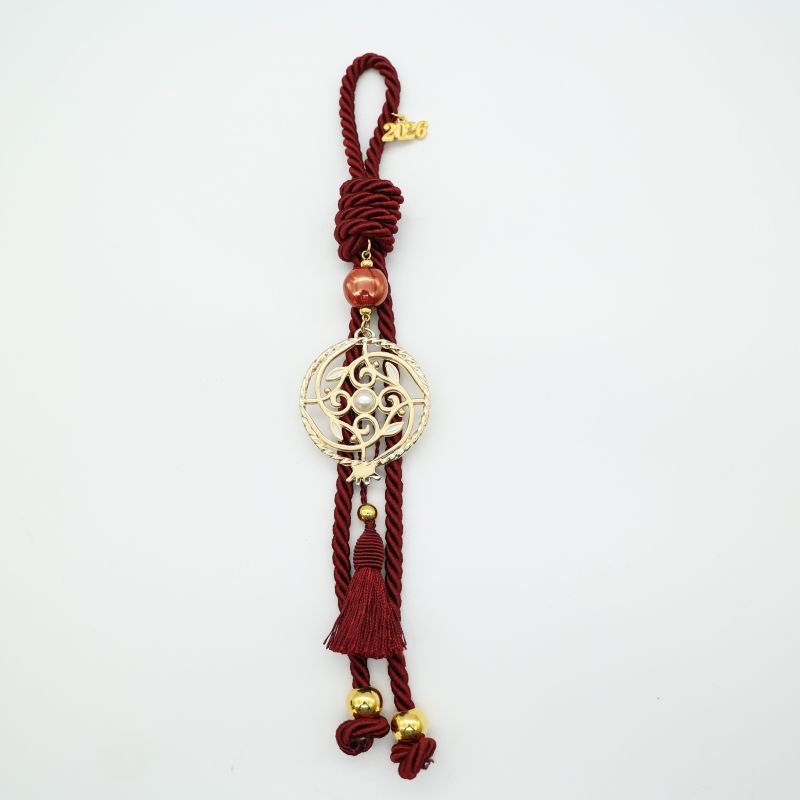 Κρεμαστό Μπορντό Γούρι 2026 με Μεταλλικό Χρυσό Ρόδι - Δέντρο της Ζωής