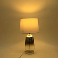 Επιτραπέζιο Φωτιστικό με Λευκό Λινό Καπέλο Μεταλλίκο - Γυάλινο Ασημί 30x52cm