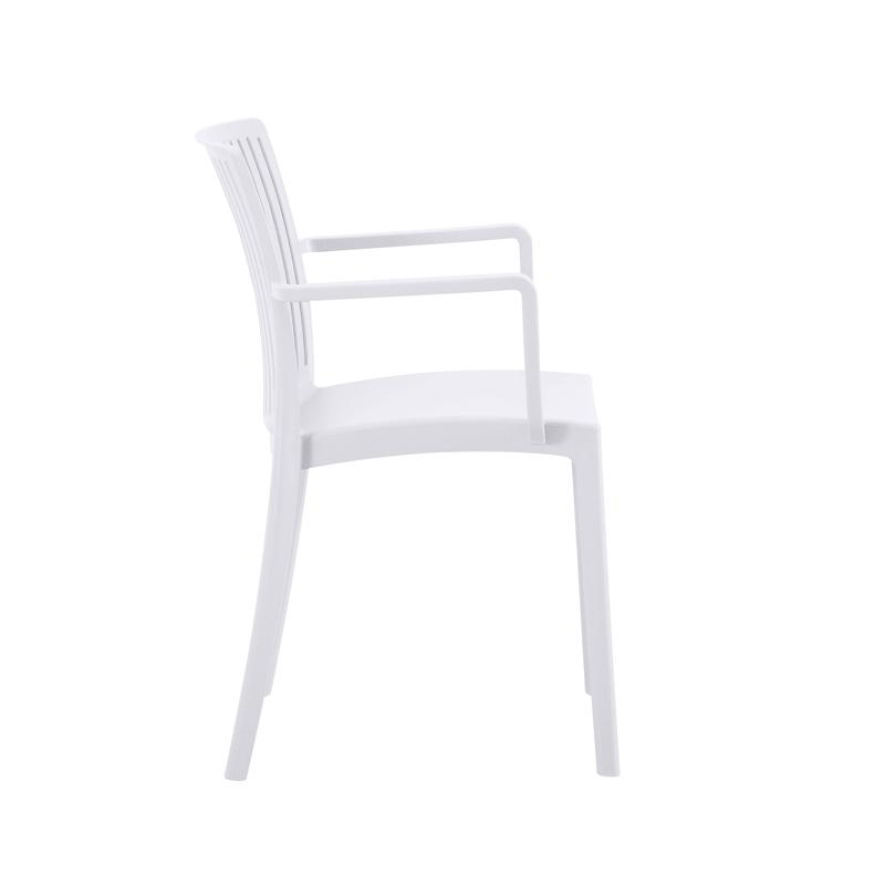 Η καρέκλα κήπου που συνδυάζει τον μίνιμαλ σχεδιασμό με τη λειτουργικότητα και την ανθεκτικότητα. Είναι κατασκευασμένη από υψηλής ποιότητας πολυπροπυλένιο (PP) και ενισχυμένη με UV προστασία, για να αντέχει στον ήλιο και τις εξωτερικές συνθήκες χωρίς να αλλοιώνεται το χρώμα ή το υλικό της.