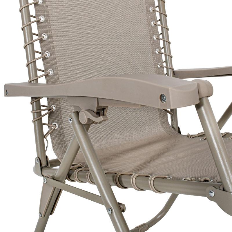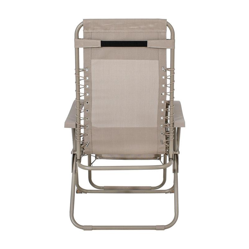 Ανακαλύψτε την απόλυτη άνεση στον κήπο, την παραλία ή το κάμπινγκ με την ανακλινόμενη πτυσσόμενη καρέκλα. Ο στιβαρός μεταλλικός σκελετός, σε συνδυασμό με το ανθεκτικό ύφασμα, προσφέρει εξαιρετική σταθερότητα και αντοχή στις εξωτερικές συνθήκες.Χάρη στον εργονομικό σχεδιασμό της και τον μηχανισμό ανάκλισης, μπορείτε να ρυθμίσετε εύκολα τη θέση της πλάτης για ξεκούραση και χαλάρωση. Διαθέτει αποσπώμενο μαξιλαράκι στήριξης για τον αυχένα και βραχίονες για επιπλέον άνεση.