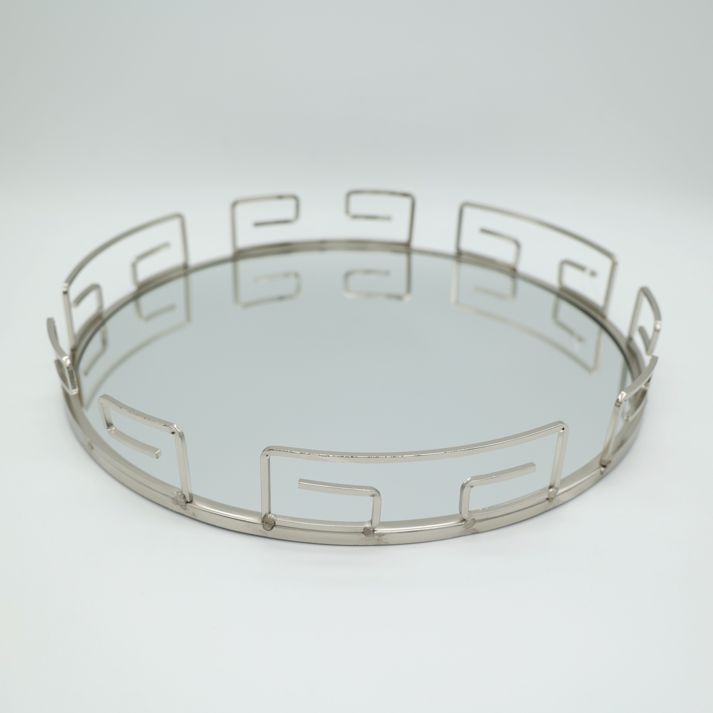Δίσκος Μεταλλικός με Καθρέφτη Ασημί 39x5.5cm