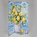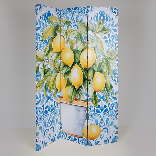 Παραβάν Καμβάς Εκτύπωση Γλάστρα με Λεμόνια Κίτρινο-Πράσινο-Γαλάζιο 120x2.5x180cm