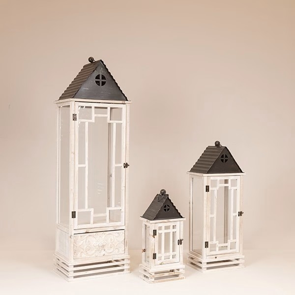 Φανάρι Ξύλο-Μεταλλική Οροφή Λευκό-Μαύρο 20x13x43cm