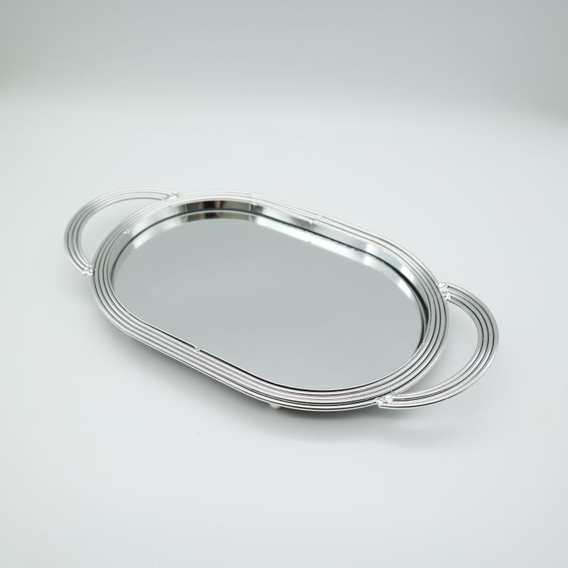 Δίσκος Μεταλλικός με Καθρέφτη Ασημί 21x38cm
