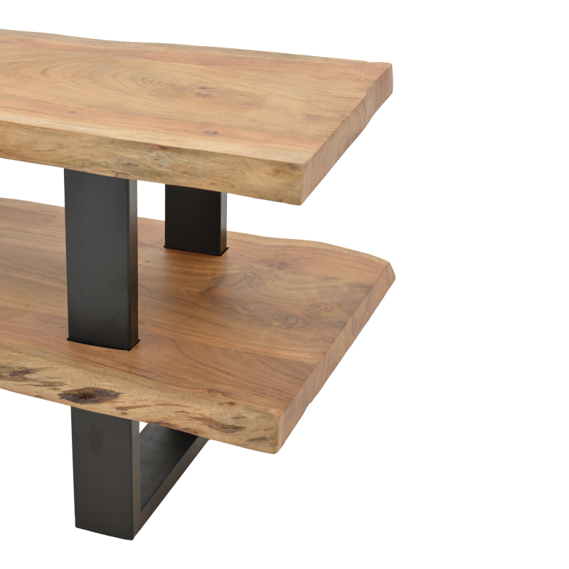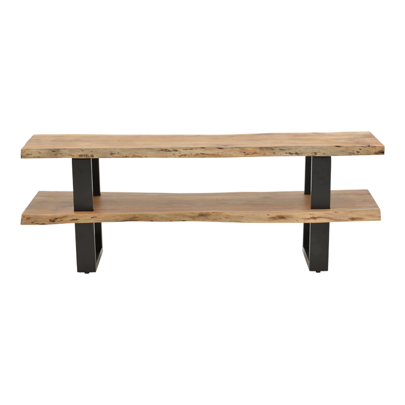 Έπιπλο τηλεόρασης Fuji pakoworld μασίφ ξύλο ακακίας σε φυσική απόχρωση με μαύρα μεταλλικά πόδια 140x40x52εκ