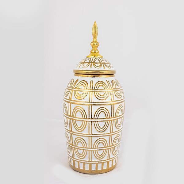 ΒΑΖΟ ΜΕ ΚΑΠΑΚΙ ΚΕΡΑΜΙΚΟ ΛΕΥΚΟ - ΧΡΥΣΟ 15x15x35.2cm