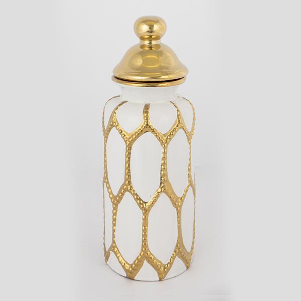 ΒΑΖΟ ΜΕ ΚΑΠΑΚΙ ΚΕΡΑΜΙΚΟ ΛΕΥΚΟ - ΧΡΥΣΟ 12.5x36cm
