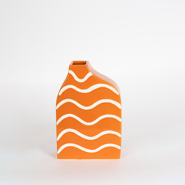 ΒΑΖΟ ΚΕΡΑΜΙΚΟ ΠΟΡΤΟΚΑΛΙ ΜΕ ΛΕΥΚΕΣ ΓΡΑΜΜΕΣ 15x6x23cm