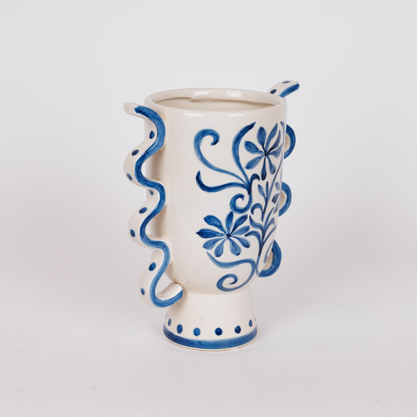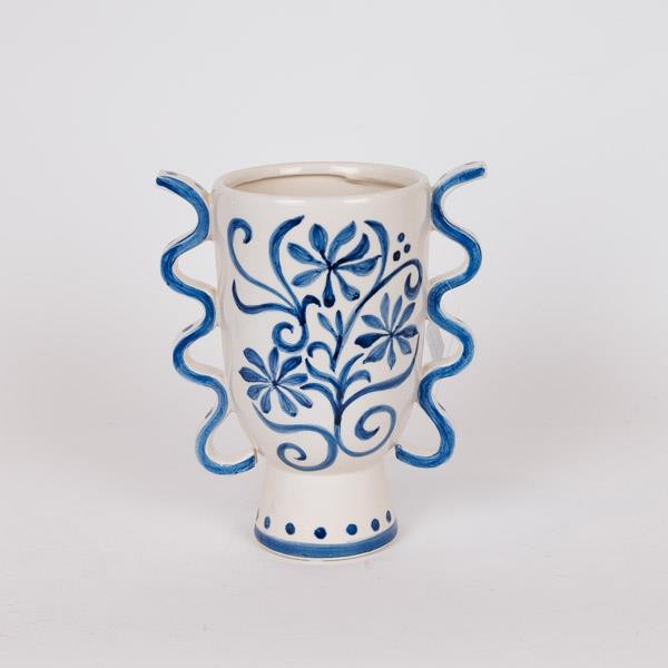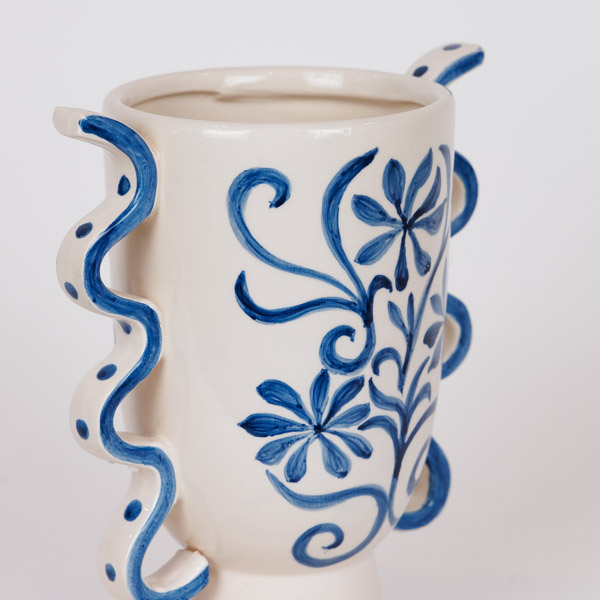 ΒΑΖΟ ΚΕΡΑΜΙΚΟ ΜΕ ΛΟΥΛΟΥΔΙΑ ΜΠΛΕ-ΛΕΥΚΟ 20.8x13x23.8cm