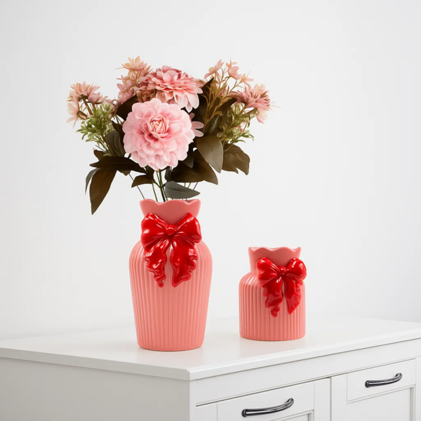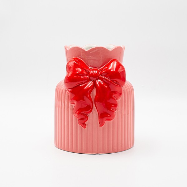 ΒΑΖΟ ΜΕ ΦΙΟΓΚΟ ΠΗΛΙΝΟ ΡΟΖ - ΚΟΚΚΙΝΟ 14.5x14x17.2cm