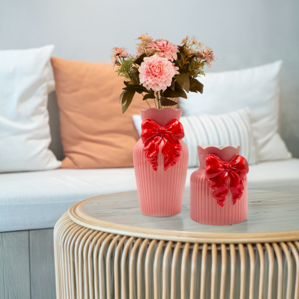 ΒΑΖΟ ΜΕ ΦΙΟΓΚΟ ΠΗΛΙΝΟ ΡΟΖ - ΚΟΚΚΙΝΟ 14.5x14x17.2cm
