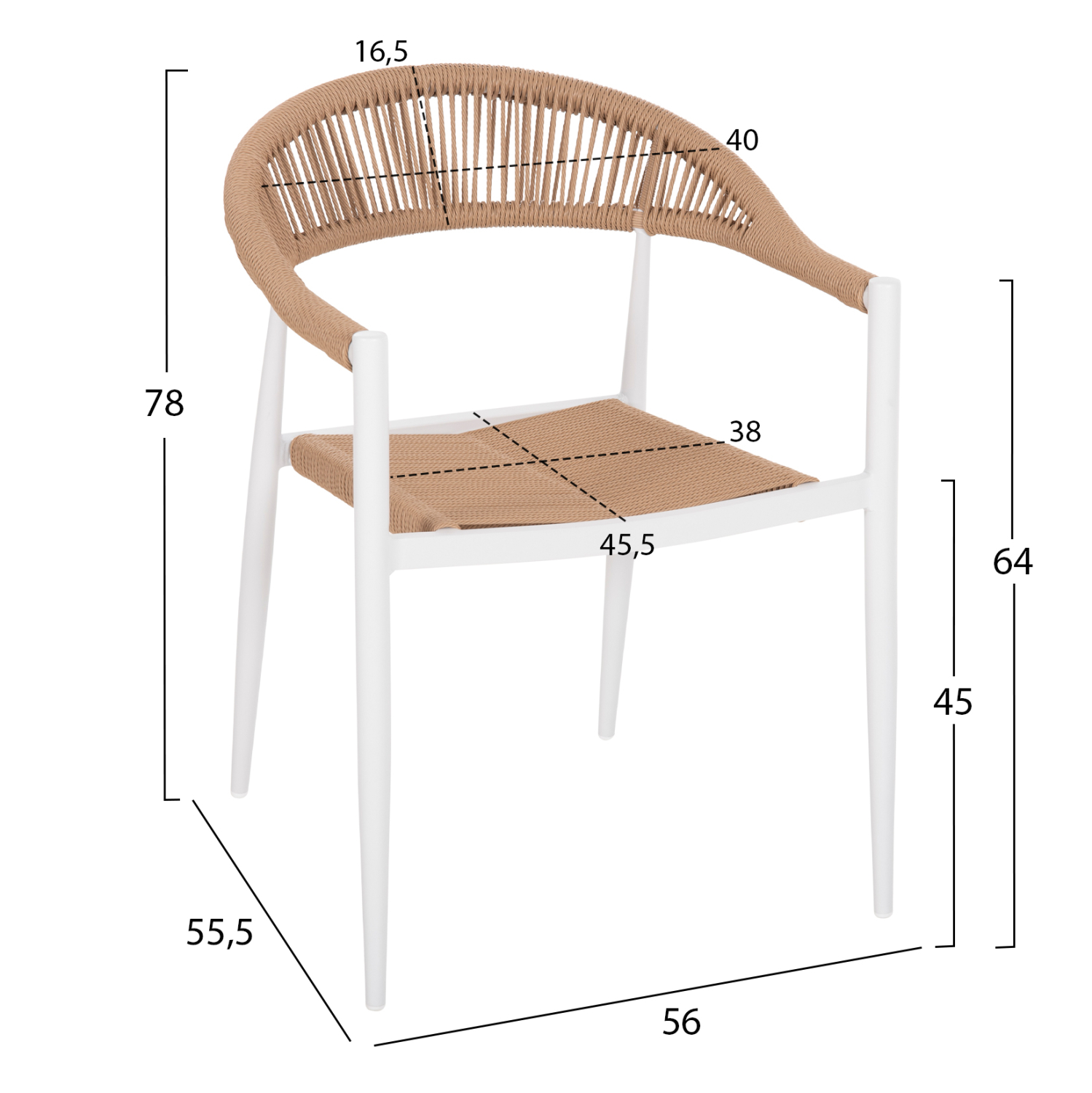 Η πολυθρόνα FB95854.01 είναι πανέμορφη! Μοντέρνα, άνετη και σταθερή! Η διχρωμία του ΛΕΥΚΟΥ σκελετού με την ΜΠΕΖ επένδυση από RATTAN-WICKER στο κάθισμα, την πλάτη και τα μπράτσα είναι μοναδική. Η πλάτη είναι στρογγυλεμένη και αγκαλιάζει το σώμα ενώ το κάθισμα αντί για μαξιλάρι έχει πλέξη από rattan. Η πολυθρόνα αυτή θα αναβαθμίσει αισθητικά τον χώρο που θα την τοποθετήσετε και θα τραβήξει τα βλέμματα χάρη στα υλικά κατασκευής της. Επίσης, το γεγονός ότι είναι στοιβαζόμενη την κάνει ιδιαιτέρως πρακτική αφού μπορείτε να την αποθηκεύσετε στον μικρότερο δυνατό χώρο.