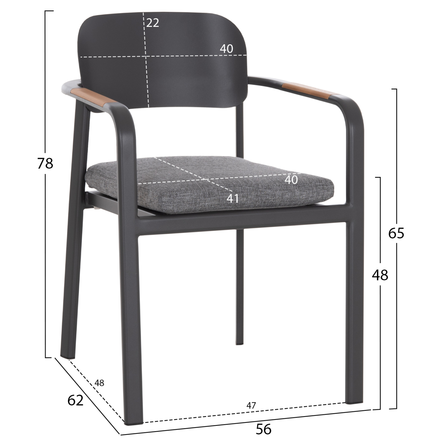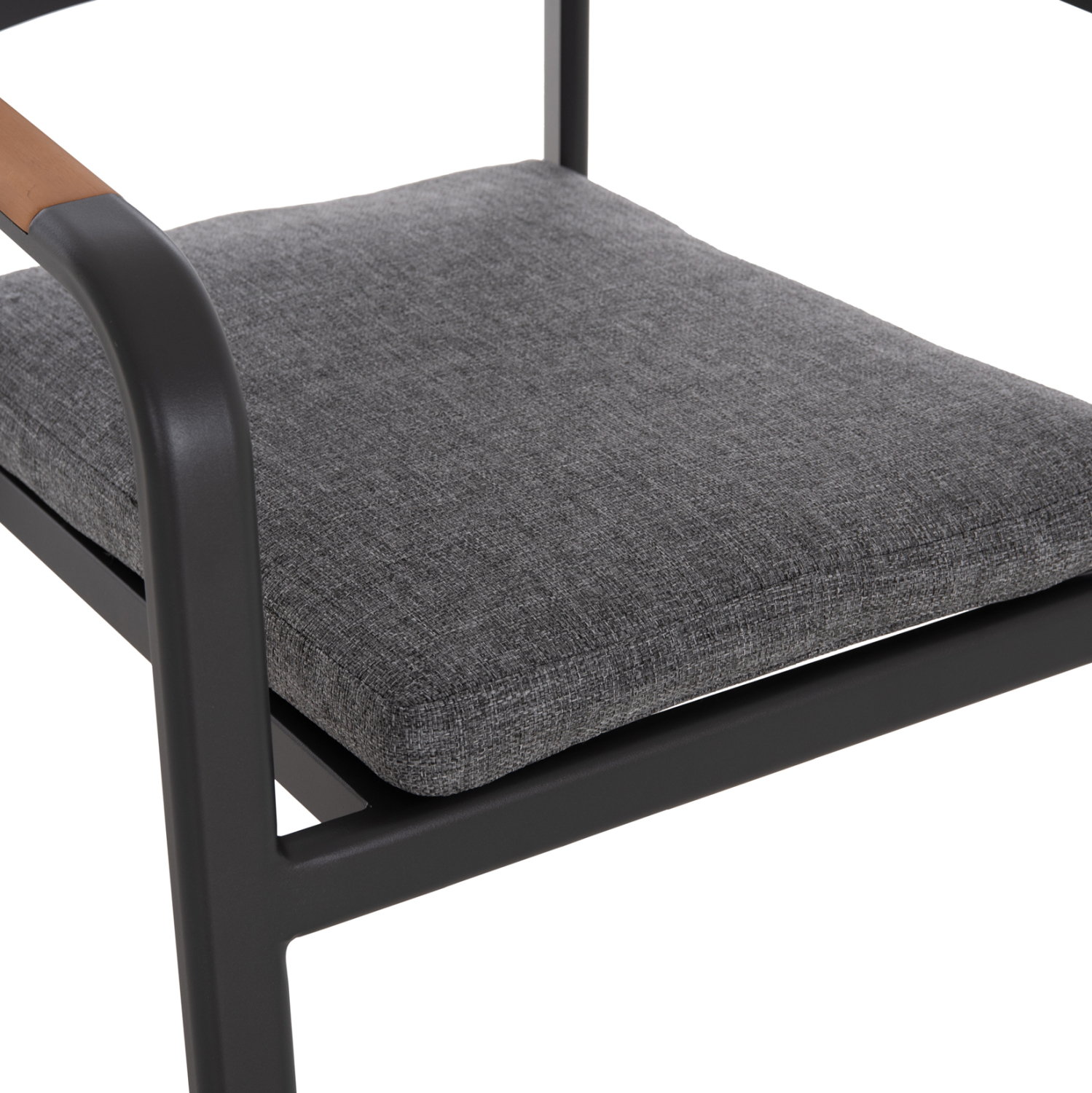 Η πολυθρόνα εξωτερικού χώρου FB96414.01 συνδυάζει μοντέρνα αισθητική, ανθεκτικά υλικά και πρακτική λειτουργικότητα. Ο σκελετός από αλουμίνιο σε σκούρο γκρι χρώμα προσφέρει υψηλή αντοχή στις εξωτερικές συνθήκες, ενώ τα διακοσμητικά τελειώματα από ξύλο teak στα μπράτσα προσθέτουν φυσική και ζεστή πινελιά. Το μαξιλάρι καθίσματος διαθέτει κάλυμμα OLEFIN και αφρό 25D για άνεση κατά τη χρήση. Στοιβαζόμενη για εύκολη αποθήκευση.
