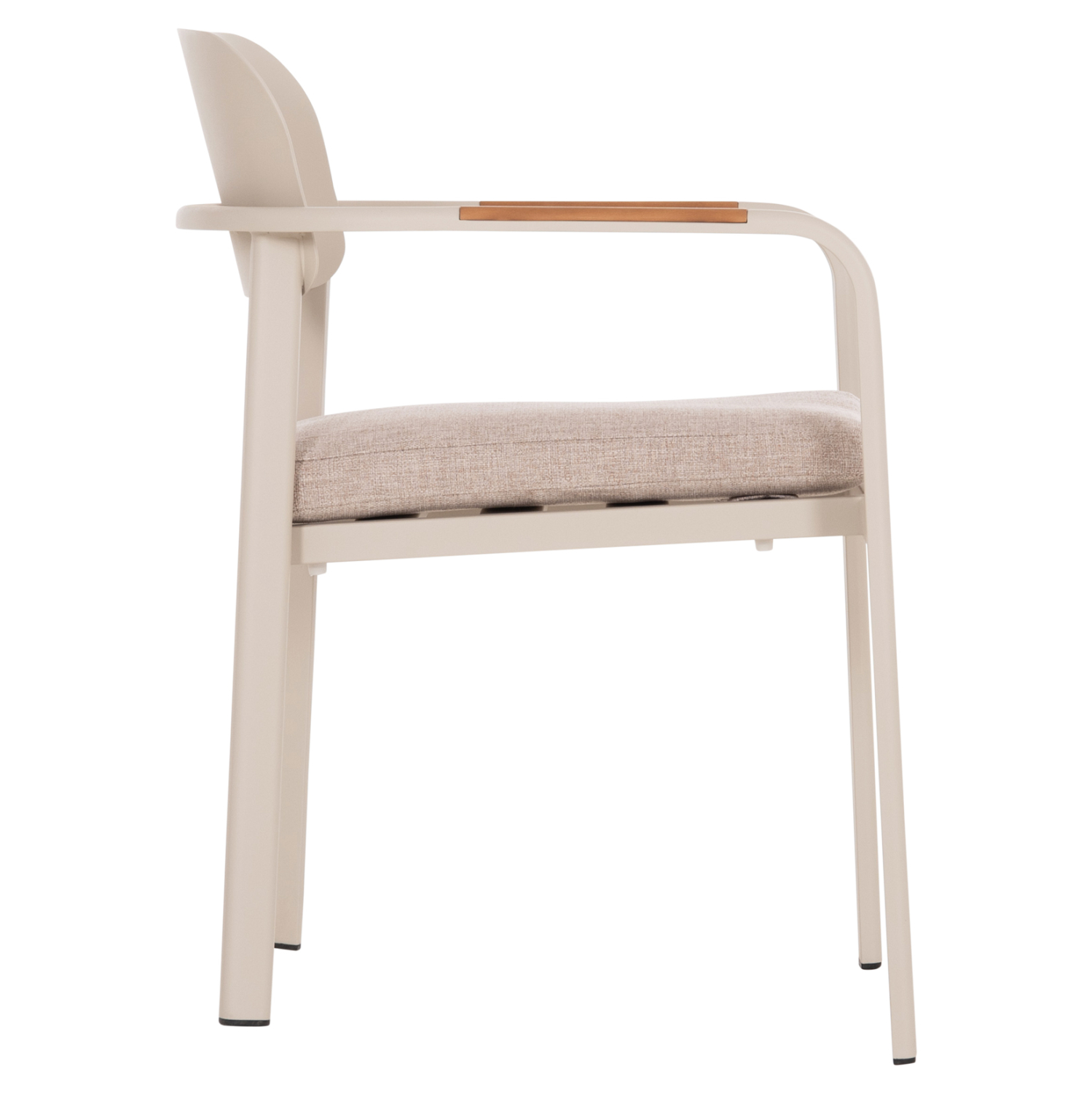 Η πολυθρόνα εξωτερικού χώρου FB96414.05 συνδυάζει μοντέρνα αισθητική, ανθεκτικά υλικά και πρακτική λειτουργικότητα. Ο σκελετός από αλουμίνιο σε ΜΠΕΖ χρώμα προσφέρει υψηλή αντοχή στις εξωτερικές συνθήκες, ενώ τα διακοσμητικά τελειώματα από ξύλο teak στα μπράτσα προσθέτουν φυσική και ζεστή πινελιά. Το μαξιλάρι καθίσματος διαθέτει κάλυμμα OLEFIN σε ΜΠΕΖ χρώμα και αφρό 25D για άνεση κατά τη χρήση. Στοιβαζόμενη για εύκολη αποθήκευση.