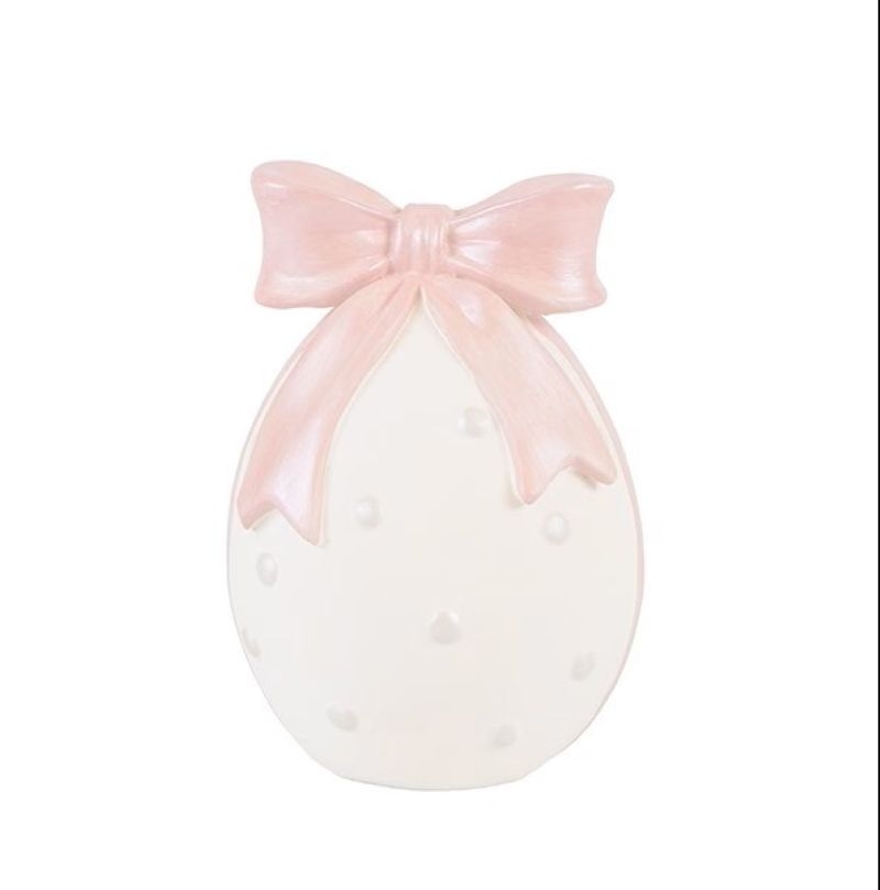 Πασχαλινό Αυγό Πολυρεζίν Λευκό με Ροζ Φιόγκο 7.8x7.8x12cm