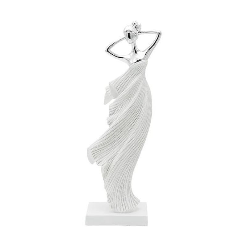 Εντυπωσιακό διακοσμητικό γλυπτό που απεικονίζει γυναικεία φιγούρα σε κομψή ασημί απόχρωση. Ο μοντέρνος και καλλιτεχνικός σχεδιασμός του προσδίδει στυλ και φινέτσα, καθιστώντας το ιδανικό για σύγχρονους χώρους.