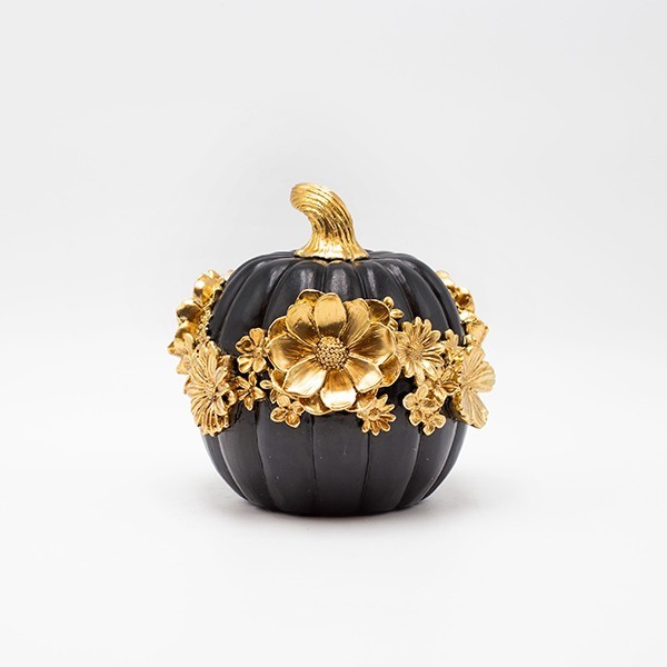 ΔΙΑΚΟΣΜΗΤΙΚΗ ΚΟΛΟΚΥΘΑ ΜΕ ΛΟΥΛΟΥΔΙΑ ΠΟΛΥΡΕΖΙΝ ΜΑΥΡΟ-ΧΡΥΣΟ 14.8x14.4x14.2cm