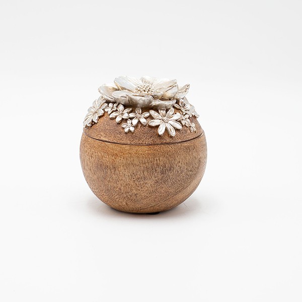 ΔΙΑΚΟΣΜΗΤΙΚΟ ΣΤΡΟΓΓΥΛΟ ΚΟΥΤΙ ΛΟΥΛΟΥΔΙΑ ΠΟΛΥΡΕΖΙΝ-ΞΥΛΟ ΦΥΣΙΚΟ-ΑΣΗΜΙ 9.5x9.5x9.5cm
