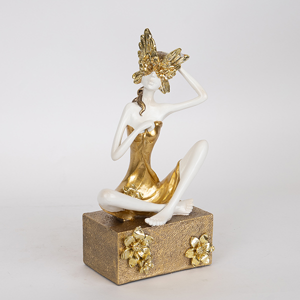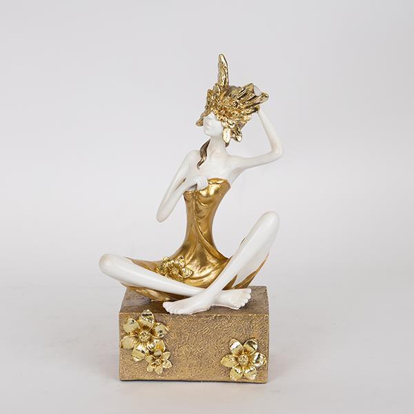 ΔΙΑΚΟΣΜΗΤΙΚΟ ΓΛΥΠΤΟ ΡΕΖΙΝ ΓΥΝΑΙΚΑ ΜΕ ΜΑΣΚΑ ΛΕΥΚΟ-ΧΡΥΣΟ 15.5x10x28cm