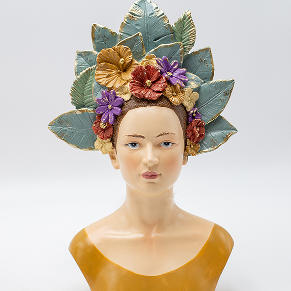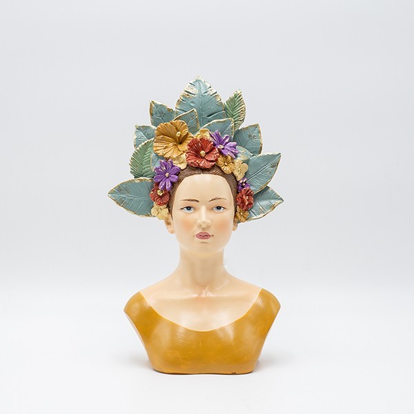 ΔΙΑΚΟΣΜΗΤΙΚΟ ΓΛΥΠΤΟ ΠΡΟΤΟΜΗ ΓΥΝΑΙΚΑΣ ΜΕ ΦΥΛΛΑ & ΛΟΥΛΟΥΔΙΑ ΣΤΑ ΜΑΛΛΙΑ ΠΟΛΥΡΕΖΙΝ ΠΟΛΥΧΡΩΜΟ 17.5x9.5x28cm