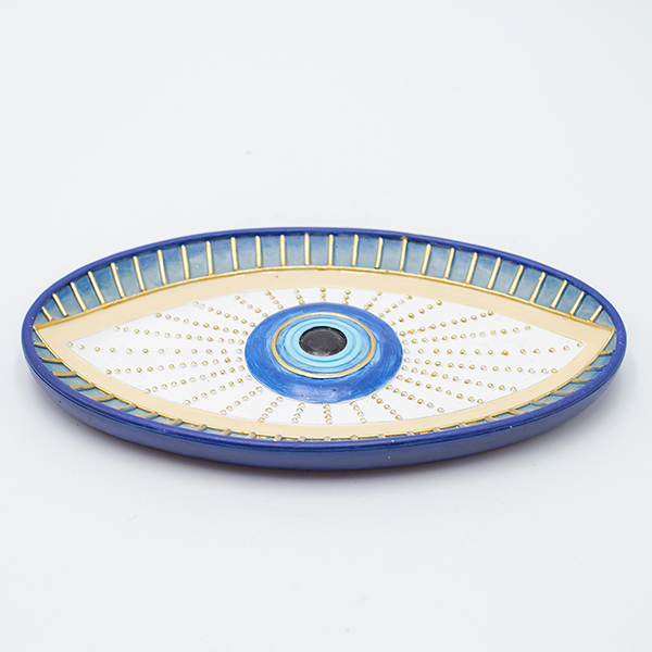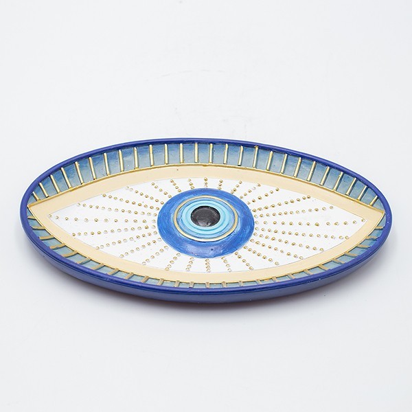 ΔΙΑΚΟΣΜΗΤΙΚΗ ΠΙΑΤΕΛΑ ΣΕ ΣΧΗΜΑ ΜΑΤΙΟΥ ΠΟΛΥΡΕΖΙΝ ΜΠΛΕ & ΧΡΥΣΕΣ ΛΕΠΤΟΜΕΡΕΙΕΣ 20x12x2cm