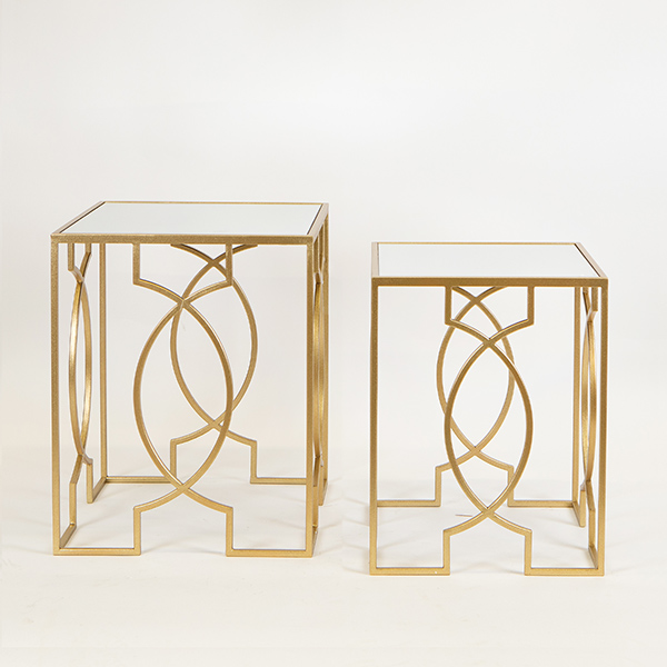 S/2 ΒΟΗΘΗΤΙΚΑ ΤΡΑΠΕΖΑΚΙΑ ΜΕΤΑΛΛΙΚΑ ΧΡΥΣΑ ME ΓΥΑΛΙ 40.5x40.5x51.5cm / 35.5x35.5x46.5cm