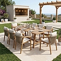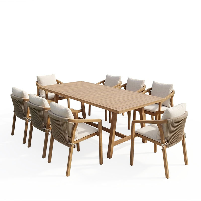 Αναβαθμίστε την αισθητική του εξωτερικού σας χώρου με ένα σετ που συνδυάζει την πολυτέλεια του φυσικού ξύλου με τη σύγχρονη αρχιτεκτονική σχεδίαση. Αυτή η τραπεζαρία δεν είναι απλώς ένα έπιπλο, αλλά ένας προορισμός χαλάρωσης και επικοινωνίας για εσάς και τους καλεσμένους σας.