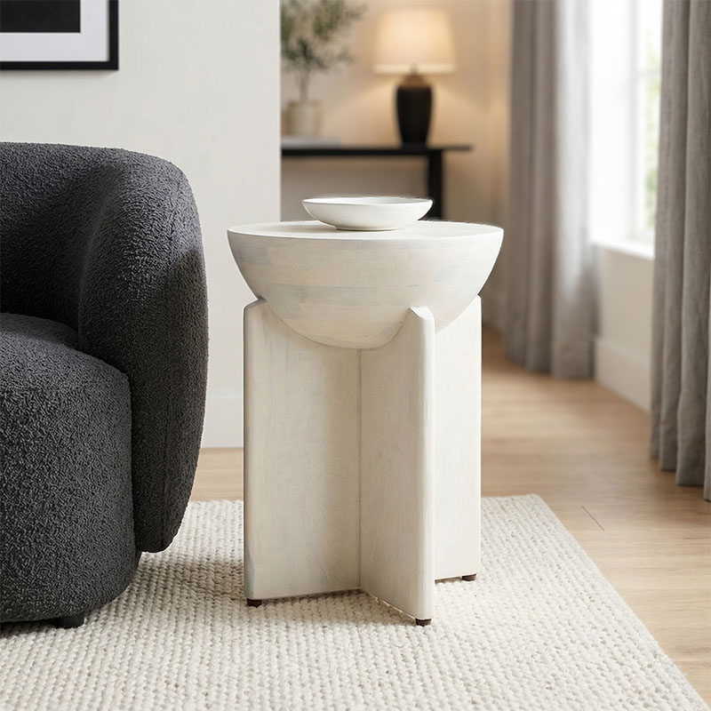 Βοηθητικό τραπέζι Jenby pakoworld μασίφ μάνγκο ξύλο λευκό Φ40x50εκ