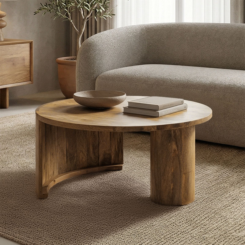 Τραπέζι σαλονιού Orban pakoworld μασίφ μάνγκο ξύλο σε φυσική απόχρωση Φ80x45εκ