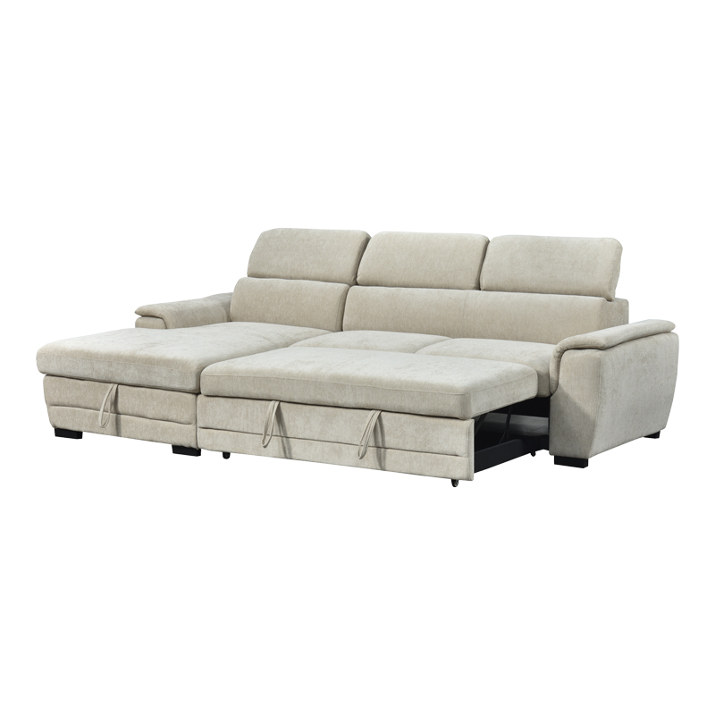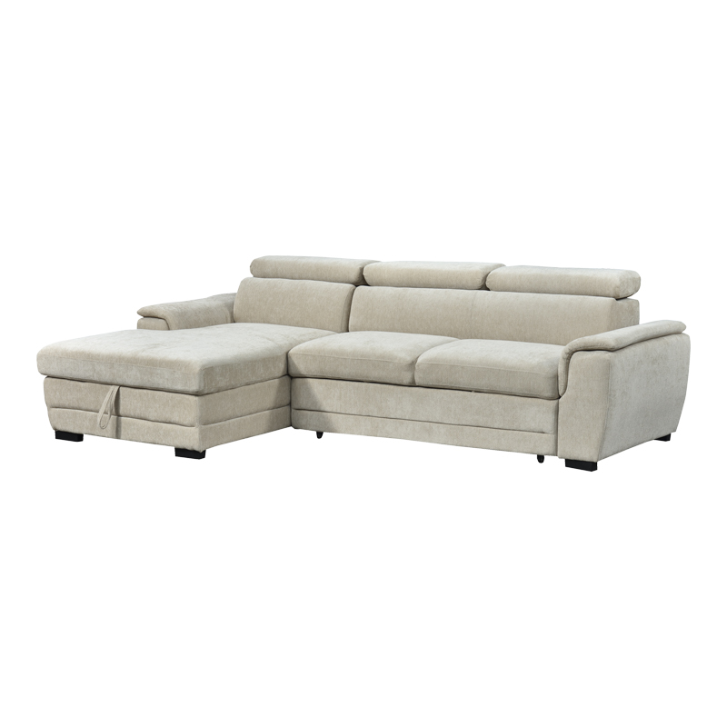 Γωνιακός καναπές-κρεβάτι δεξία γωνία Dreamora pakoworld με αποθηκευτικό ύφασμα μπεζ 270x167x82εκ