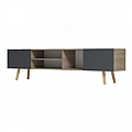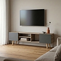 - Αποθηκευτικοί Χώροι: Το έπιπλο διαθέτει ισορροπημένη κατανομή χώρων:Δύο κλειστά ντουλάπια με πόρτες για διακριτική αποθήκευση και απόκρυψη καλωδιώσεων και αντικειμένων και δύο ανοιχτά ράφια, ιδανικά για την τοποθέτηση συσκευών (π.χ. DVD player, κονσόλες, αποκωδικοποιητές) με εύκολη πρόσβαση.