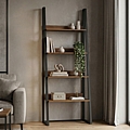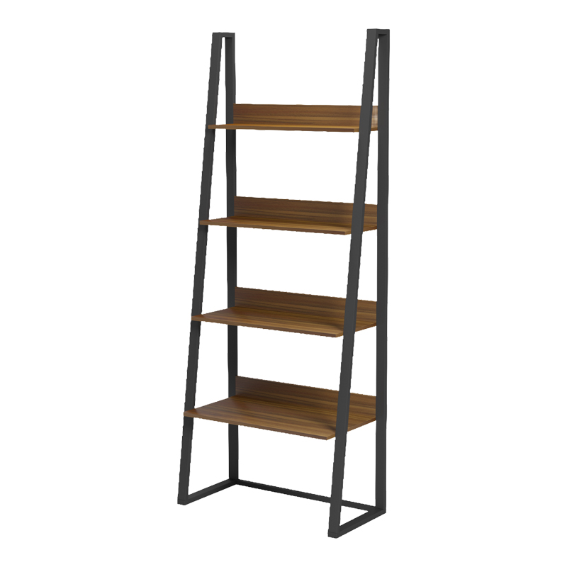 Βιβλιοθήκη-Ραφιέρα Alfa pakoworld καρυδι-μαύρο μέταλλο 75x36x185εκ