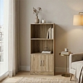 Η κομψή βιβλιοθήκη Tekaro συνδυάζει λειτουργικότητα και στυλ, προσφέροντας άφθονο αποθηκευτικό χώρο για βιβλία και διακοσμητικά αντικείμενα. Διαθέτει ένα ενσωματωμένο ντουλάπι στο κάτω μέρος, ιδανικό για διακριτική αποθήκευση. Οι μεταλλικές λαβές προσθέτουν μια μοντέρνα πινελιά, ενώ η στιβαρή ξύλινη κατασκευή εγγυάται ανθεκτικότητα.