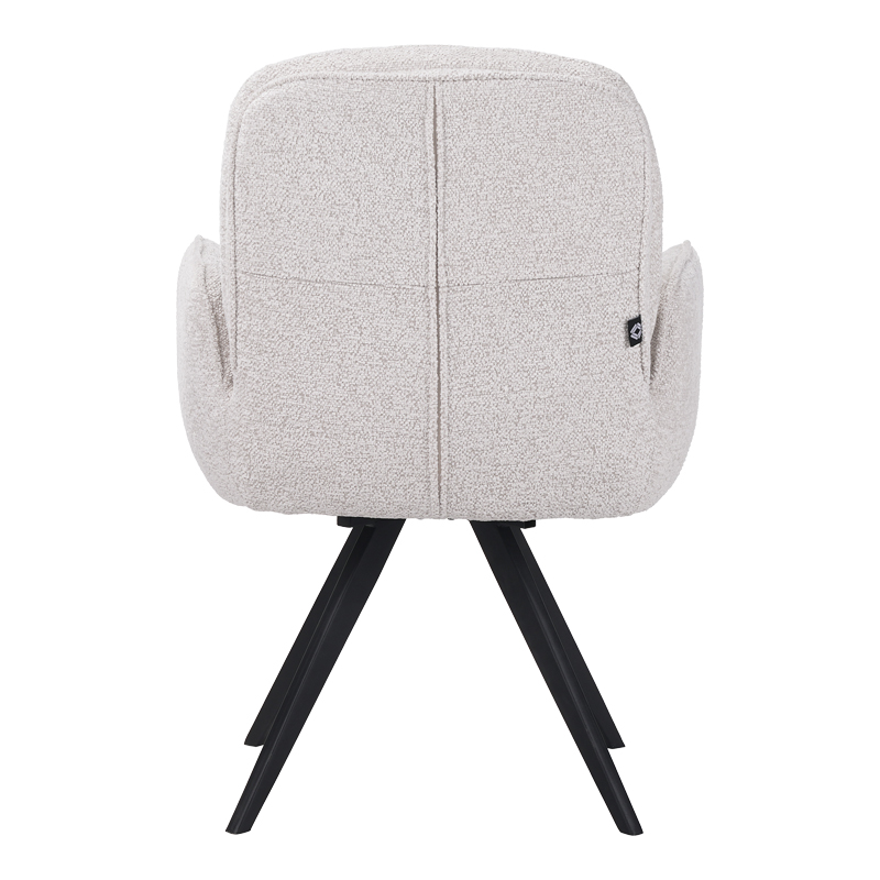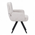 - Το κάθισμα και η πλάτη είναι επενδυμένα με ύφασμα σε μια λευκή περλέ απόχρωση που προσδίδει έναν τόνο πολυτέλειας και φωτεινότητας στον χώρο.