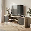 Σχεδιασμένο για να συνδυάζει σύγχρονο στυλ και απόλυτη πρακτικότητα, αυτό το έπιπλο αποτελεί την ιδανική βάση για την τηλεόρασή σας και προσφέρει άφθονο αποθηκευτικό χώρο για όλες τις συσκευές και τα αξεσουάρ σας. Η μοντέρνα σύνθεση της ζεστής απόχρωσης με τις σκούρες, ανθρακί πόρτες δημιουργεί μια ισορροπημένη, Dual Tone αισθητική που αναδεικνύει κάθε χώρο.