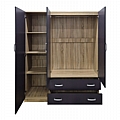 - Περιλαμβάνει τρεις πόρτες, εσωτερικά φέρει ράγα για κρεμάστρες και ράφια ενώ κάτω φέρει δύο μεγάλα συρτάρια για την αποθήκευση ρούχων και αξεσουάρ.
