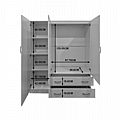 - Περιλαμβάνει τρεις πόρτες, εσωτερικά φέρει ράγα για κρεμάστρες και ράφια ενώ κάτω φέρει δύο μεγάλα συρτάρια για την αποθήκευση ρούχων και αξεσουάρ.