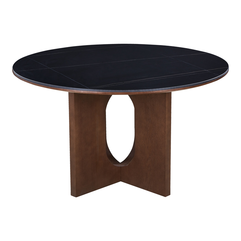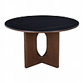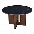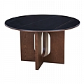 Τραπέζι Merge pakoworld sintered stone-mdf σε μαύρο μαρμάρου με καρυδί βάση Φ130x75εκ
