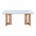 Τραπέζι Benqui pakoworld sintered stone-mdf σε λευκό μαρμάρου με βάση σε φυσική απόχρωση 160x90x75εκ