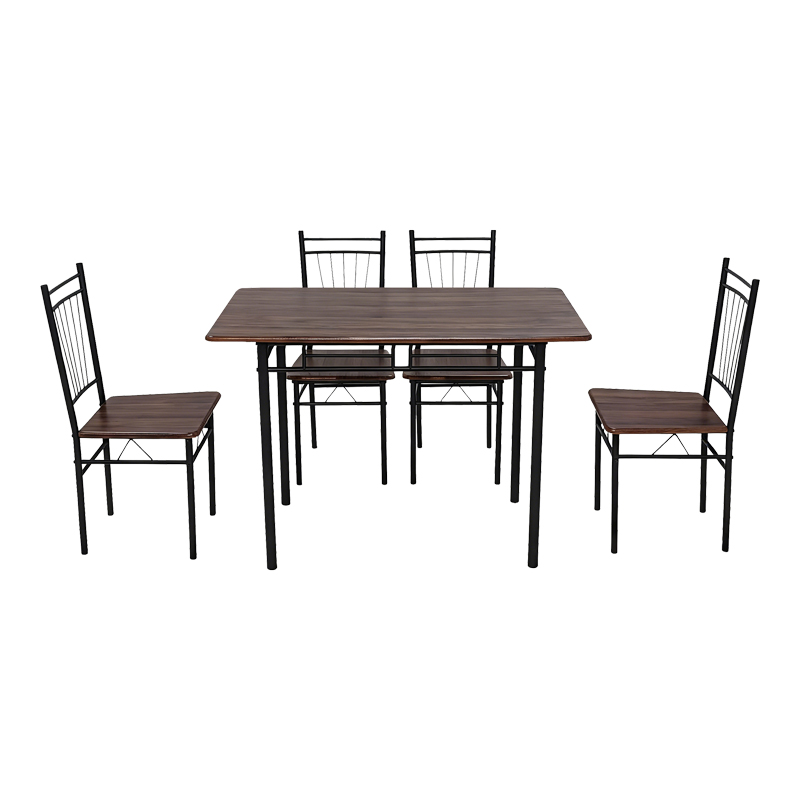 Τραπεζαρία Roza pakoworld σετ 5τμχ mdf καρυδί με μεταλλικό μαύρο πόδι 110x60x75εκ