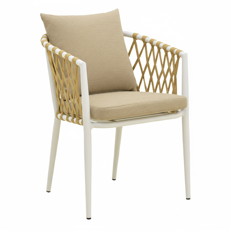 Ανανεώστε τον χώρο σας με την κομψή πολυθρόνα Peluxe, συνδυάζοντας σύγχρονο design και εξαιρετική άνεση. Με ανθεκτικό σκελετό αλουμινίου σε λευκό και ντύσιμο με σχοινί σε φυσική απόχρωση , προσφέρει μοναδικό χαρακτήρα και στιβαρότητα.