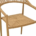 Η επιφάνεια έχει υποστεί ειδική επεξεργασία ψεκασμού για προστασία από τις καιρικές συνθήκες, ενώ η δυνατότητα στοίβαξης προσφέρει πρακτική αποθήκευση και εξοικονόμηση χώρου. Το φυσικό look της πλέξης ταιριάζει τέλεια σε κήπους, βεράντες, καφετέριες και χώρους φιλοξενίας που θέλουν να αποπνέουν ζεστασιά και φιλοξενία.