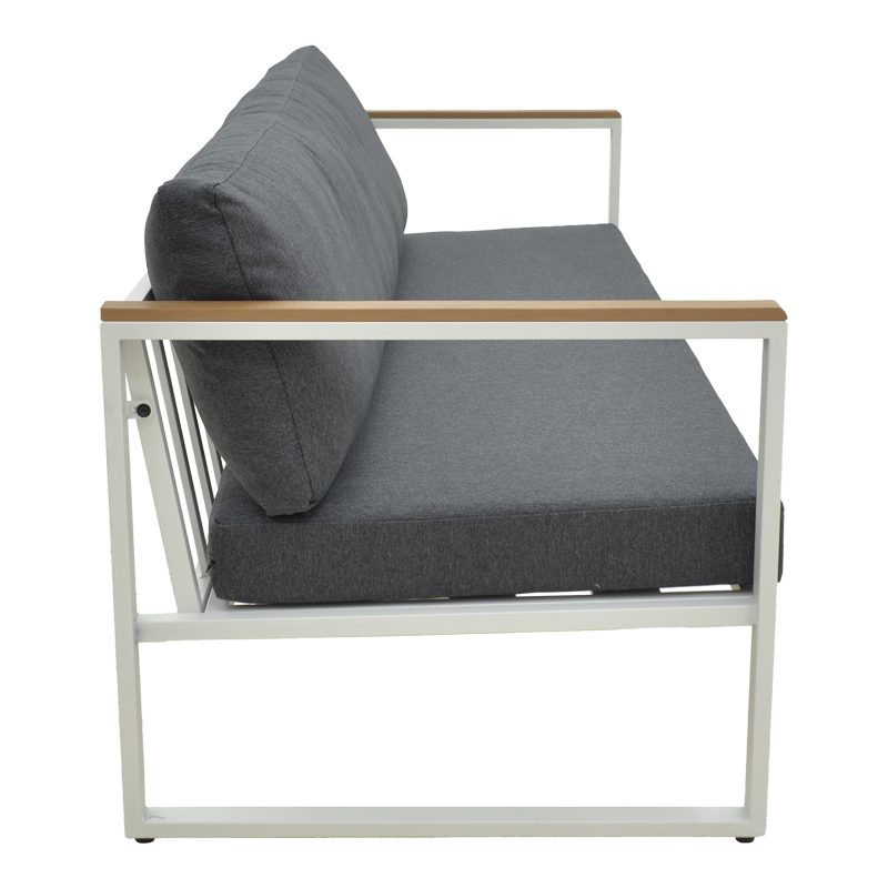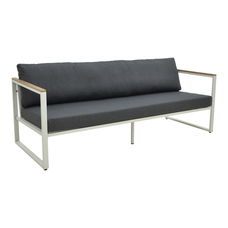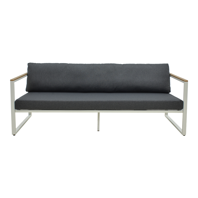 Αναβαθμίστε τον εξωτερικό ή εσωτερικό σας χώρο με τον 3θέσιο καναπέ Aurelio. Με στιβαρό ατσάλινο σκελετό και κομψές, μοντέρνες γραμμές, συνδυάζει στυλ, άνεση και μακροχρόνια αντοχή. Τα μπράτσα με επένδυση plywood προσθέτουν μια φυσική πινελιά, ενώ τα πλούσια μαξιλάρια εξασφαλίζουν μια premium εμπειρία καθίσματος.